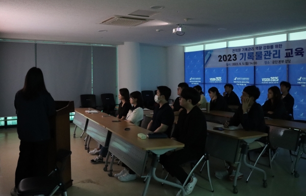이번 교육은 법정 기념일인 ‘기록의 날’을 앞두고 직원들에게 기록 관리의 중요성을 전파하기 위해 시행됐으며 기록물의 생산 및 접수를 담당하는 사무직 직원들을 대상으로 진행됐다.