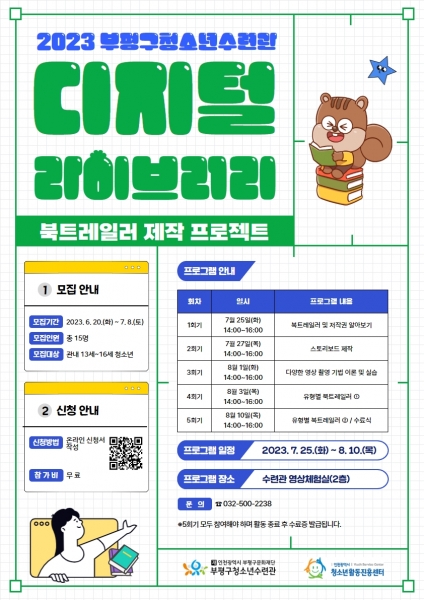 [금요저널] 부평구 청소년수련관이 7월 8일까지 디지털 라이브러리 프로그램에 참여할 참가자를 모집한다.