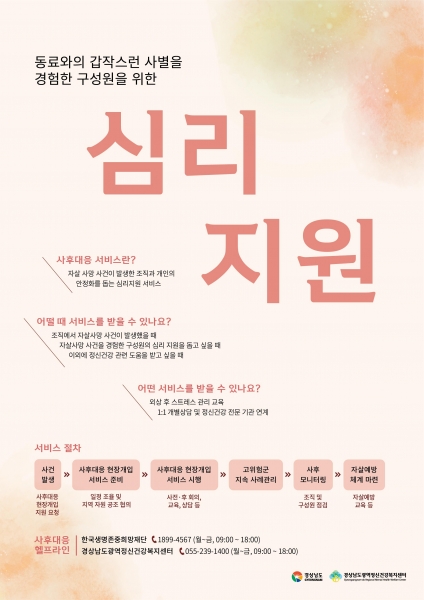 경남도, 갑작스러운 죽음으로 동료 잃은 조직 구성원에게 상담 서비스 실시한다