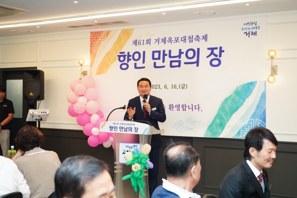[금요저널] 거제시는 지난 16일 제61회 거제옥포대첩축제를 위해 고향 축제장을 방문한 출향인사들을 예우하기 위한 향인 만남의 장을 개최했다.