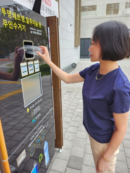 자판기 형태의 재활용품 무인회수기에 투명페트병과 캔을 투입하면 개수에 따라 포인트가 적립되고 이를 현금이나 지역사랑상품권 등으로 바꿀 수 있다.