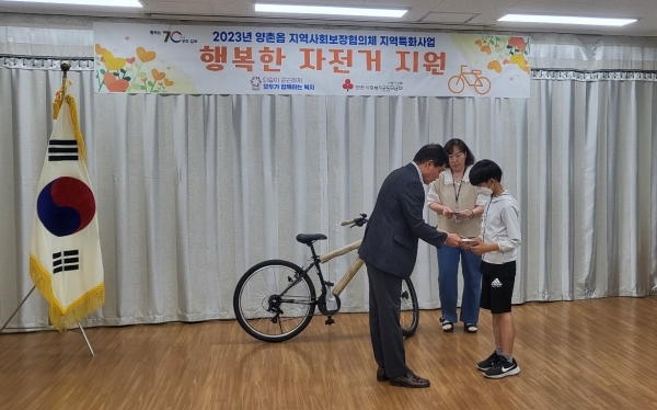 [금요저널] 양촌읍 지역사회보장협의체는 지난 16일 ‘행복 자전거 지원’ 행사를 개최했다.
