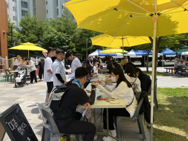 장터에서는 양말목 공예 커피 컵을 활용한 개운죽 심기 녹색소비 캠페인 쌈밥 만들기 등 11개의 체험부스와 중고 물품을 판매하는 플리마켓, 친환경직거래장터 등이 운영됐다.
