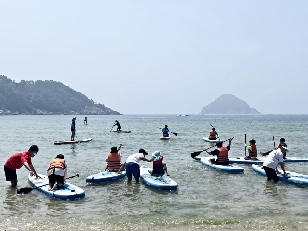 행사 2일차에는 상주은모래비치에서 남해지역아동센터를 통해 초청된 남해군 지역 아동 10여명과 함께 스탠드업 패들보드을 체험해보는 시간을 가졌다.