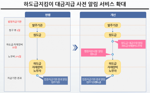 이번 ‘하도급대금 지급 사전안내 서비스’를 통해 발주기관이 원도급사에게 대금을 지급하면 하도급사 및 노무자 등에게도 해당 사실이 통보된다.