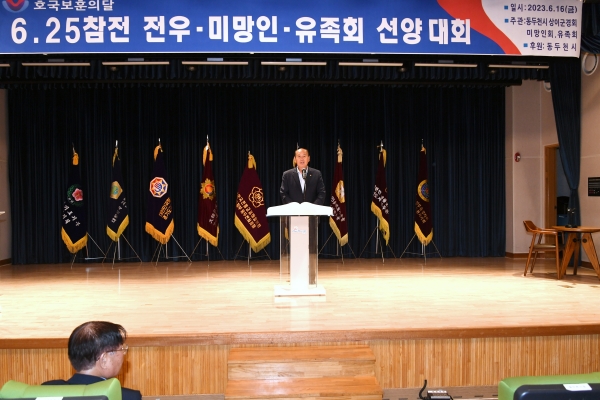 [금요저널] 대한민국상이군경회 동두천시지회는 호국보훈의 달을 맞아 지난 19일 동두천시 평생학습관 한울림공연장에서 6·25전쟁 참전전우 및 유가족의 희생과 공헌에 대한 감사의 마음을 전하고자 선양행사를 개최했다고 밝혔다.