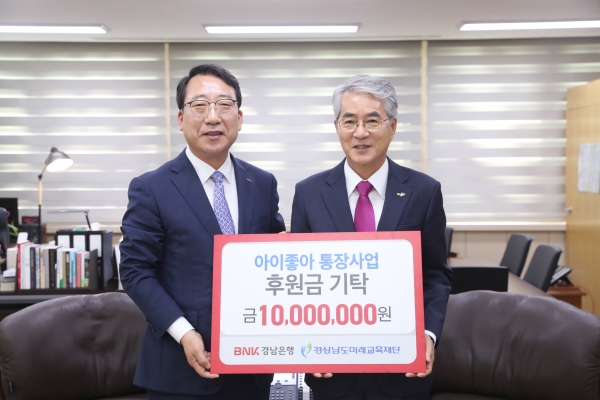 [금요저널] 경상남도미래교육재단은 20일 경남은행에서 ‘아이좋아 통장사업’ 후원금 1,000만원을 기탁했다고 밝혔다.