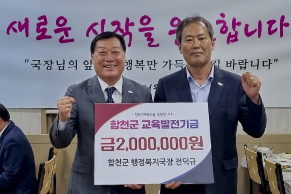 이날 전덕규 행정복지국장은 “그간의 공직생활을 마무리하는 자리에서 그동안 격려와 힘이 되어줬던 동료 공직자들께 감사의 마음을 전하고 백년지대계인 합천의 교육발전에 조금이나마 도움이 되길 바라는 마음에 기탁을 하게 됐다”고 소감을 전했다.