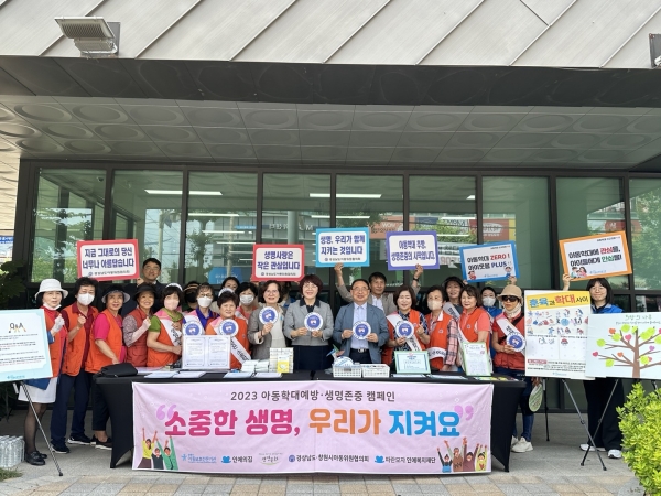 [금요저널] 창원특례시는 20일 관내 5개소에서 창원시 아동위원 80여명이 참여해 생명존중 문화 조성을 위한 ‘2023년 생명존중 캠페인’을 실시했다고 밝혔다.