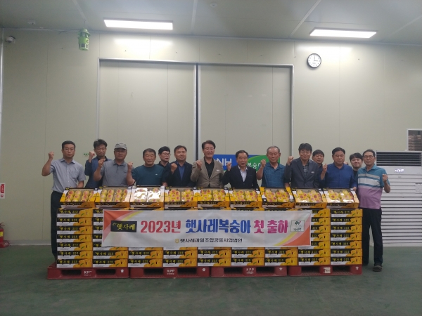 [금요저널] 햇사레과일조합공동사업법인 김기택 대표이사는 “이천시 장호원농협 강돈원 조합원이 재배한 초극 황도 30상자를 가락공판장에 출하했으며 이어서 6월 19일 경기도 이천시 경기동부원예농협 김지호 조합원이 재배한 설향로 복숭아 75상자도 강서도매시장으로 출하했다”며 “햇사레 복숭아는 지난해 대비 1주일 정도 개화가 빨라졌고 출하도 1주일 정도 빨라졌다”고 말했다.