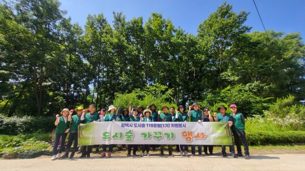 [금요저널] 평택시는 지난 17일 서탄면 금암리 참나무숲 일대에 도시숲 119요원 숲 가꾸기 봉사활동을 실시했다.