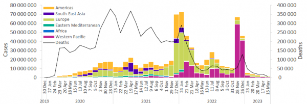 WHO 지역별 확진자·사망자 발생 현황(4주 단위, 6.11일 기준)