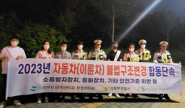 [금요저널] 의정부시는 6월 20일 의정부경찰서 한국교통안전공단 경기북부본부와 송양고등학교 인근 도로에서 불법 튜닝 이륜차에 대한 야간 합동단속을 실시했다.