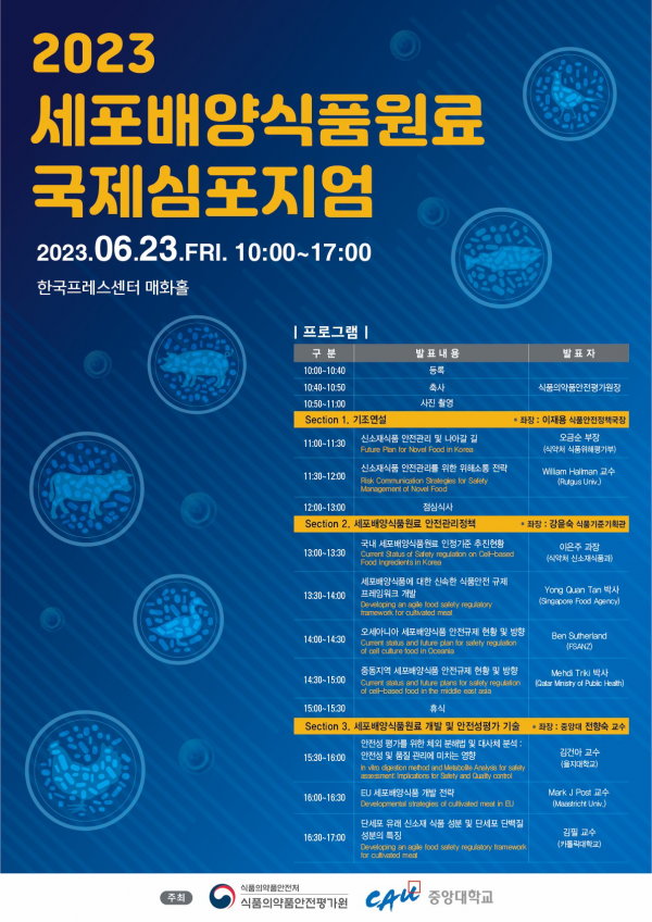 [금요저널] 식품의약품안전처는 세포배양 등 신기술을 적용한 푸드테크의 국제동향 등 최신 정보를 교류하기 위해 규제과학 인재양성사업을 수행하고 있는 중앙대학교와 공동으로 국제심포지엄을 6월 23일 개최했다.