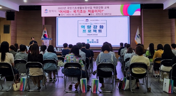 [금요저널] 평택시는 지난 22일 시청 대회의실에서 국민기초 업무 담당자 및 신규 사회복지공무원 60여명을 대상으로 ‘국민기초생활보장사업 담당자 역량강화 교육’을 실시했다고 밝혔다.
