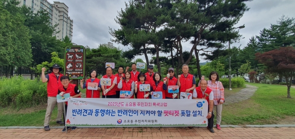 [금요저널] 동두천시 소요동 주민자치위원회는 지난 6월 22일 소요동 원터공원과 소요산 등산로 펫티켓 푯말을 설치하고 홍보활동을 실시했다.