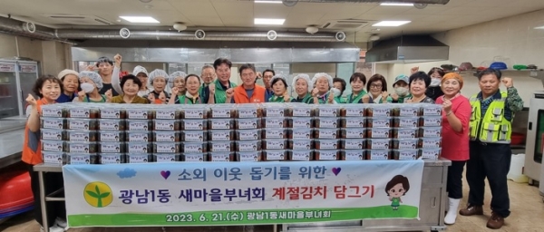 이날 담근 열무김치는 광남1동 직원과 지역사회보장협의체 위원들이 직접 기초생활수급자, 한부모가족 등 관내 취약계층 150가구에 전달했다.