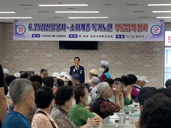[금요저널] 오산남부종합사회복지관과 화성·오산 재향군인회가 함께 지난 21일 6.25 참전 유공자 및 결식 우려 어르신들의 원기 회복을 위한 삼계탕 나눔행사를 진행했다.