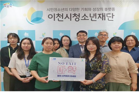 이천시청소년재단과 이천시청 청년아동과 청소년팀은 지난 21일 ‘NO EXIT-출구없는 미로, 마약’ 릴레이 캠페인에 동참했다.