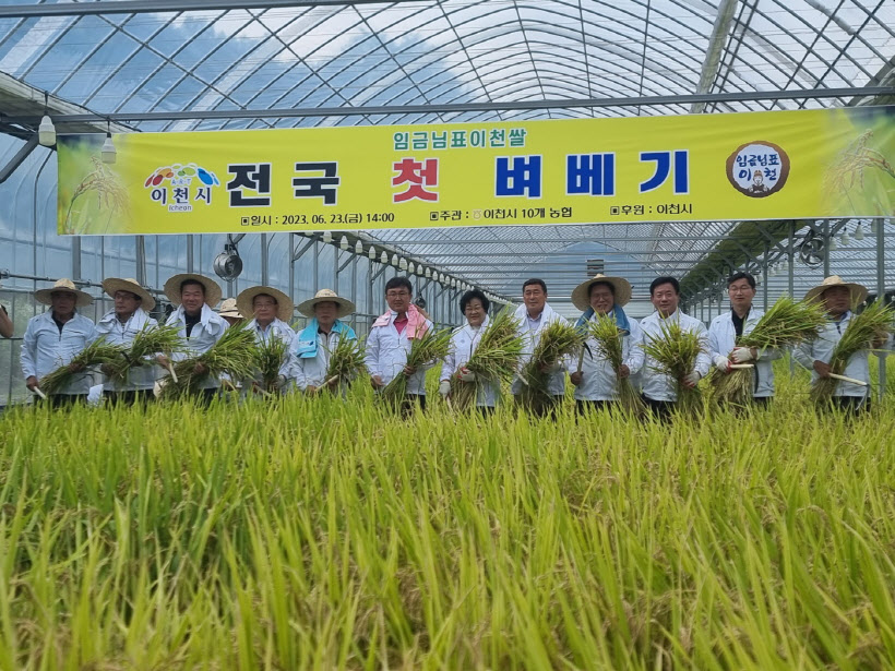 호법농협이 주최하고 임금님표이천쌀의 본고장 이천시가 주관한 첫 벼베기 행사는 지난 2월15일 990㎡규모의 연동하우스에 심어진 국내육성품종인 '해들'이다.