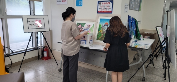 동에 따르면 이번 전시회는 동 주민자치센터 프로그램 수강생들이 직접 그린 우수작품을 선정해 행정복지센터 입구와 민원실에 전시 중이며 전시회와 함께 주민총회 의제 발굴함을 함께 비치했다.