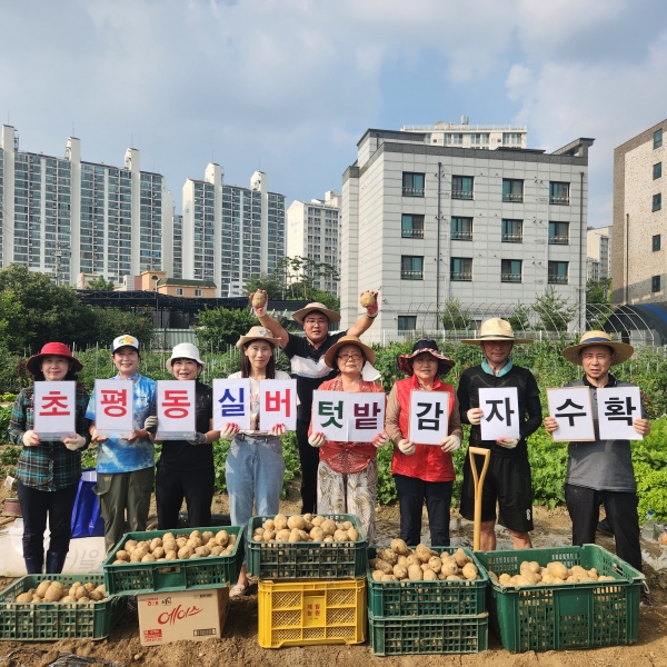 수확한 감자는 ‘파랑새 반찬드리미’, ‘찾아가는 누구나 나눔냉장고’등 초평동 복지특화사업의 식재료로 사용돼 관내 취약계층에게 지원된다.