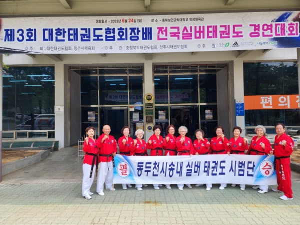 [금요저널] 동두천시 송내동 주민자치프로그램인 실버태권도팀이 지난 24일 충북보건과학대학교에서 열린 ‘제3회 대한태권도협회장배 전국실버태권도 경연대회’에서 종합 1위를 차지했다.