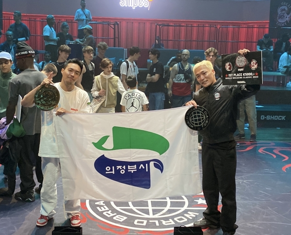 [금요저널] 의정부시는 의정부시 대표 비보이단과 의정부브레이킹협회 소속 김종호, 배영수 단원이 6월 25일 네덜란드 아인트호벤에서 개최된 2대 2 세계 비보이 메이저대회 ‘2023 World Breaking Classic’ 대회에서 대한민국 비보이 최초로 우승했다고 밝혔다.