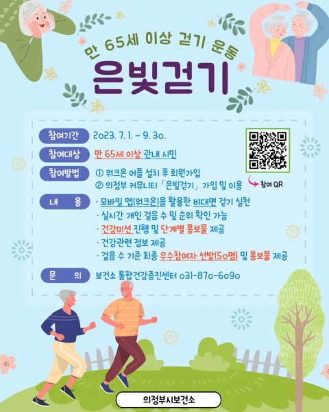 [금요저널] 의정부시 보건소는 만 65세 이상의 시민을 대상으로 7월 1일부터 9월 30일까지 ‘2023년 은빛걷기’를 실시한다.