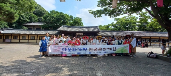 이날 체험활동에는 경제적으로 취약한 다문화가정 54명이 참여해 한국민속촌에서 한복을 입고 옹기캔들 만들기, 전통음식 맛보기, 민속공연 관람 등 한국문화를 이해하고 주민 간 소통하는 시간을 가졌다.