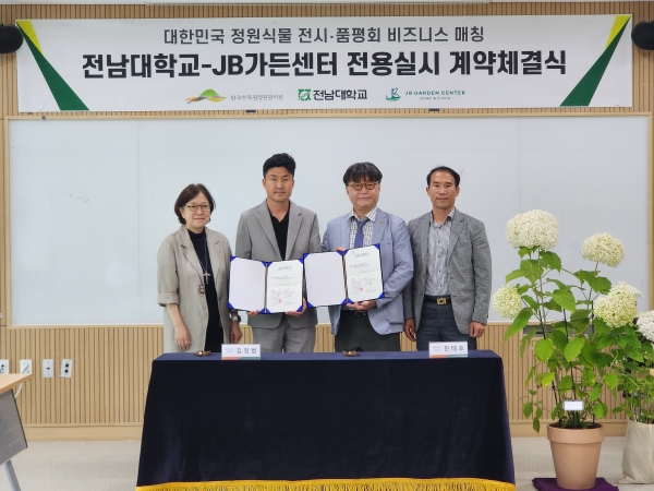 이번 매칭을 통해 전남대는 직접 개발한 신품종 수국 ‘팡팡’의 사용권을 2023년부터 2031년까지 8년간 JB가든센터에 이전하는 전용 실시권 계약을 체결했다.