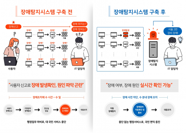 이번 체계를 직접 구축한 정보화담당관실 조석상 주무관은 “체계 장애가 행정업무 중단으로 이어지는 현실이 늘 안타까웠고 24시간 운영되는 사이버안전센터에서 장애를 함께 탐지하면 행정서비스 중단을 획기적으로 줄일 수 있겠다는 생각으로 직접 개발을 시작했다”고 전했다.