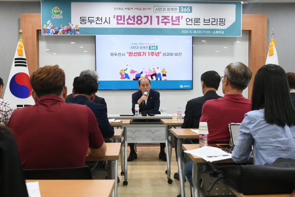 [금요저널] 박형덕 동두천시장은 민선8기 출범 1주년을 맞아 지난 28일 시청 소회의실에서 언론인 30여명이 참석한 가운데 언론 브리핑을 개최했다.