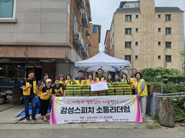 감성스피치 15기 회장이자 이번 후원활동을 제안한 ‘구이가 숯불구이’ 대표인 원용선 회장은 “김장김치가 떨어져 어려움을 겪고 있는 관내 어려운 이웃에 맛있는 계절김치를 전해드리고 싶었다 감성스피치 과정 원우들과 함께 의미 있는 일을 할 수 있어 매우 기쁘다”고 밝혔다.
