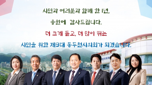 [금요저널] “더 크게 듣고 더 많이 뛰겠습니다 시민을 위한 감동 의정”이라는 기치를 내걸고 지난해 출범한 제9대 동두천시의회가 개원 1주년을 맞았다.