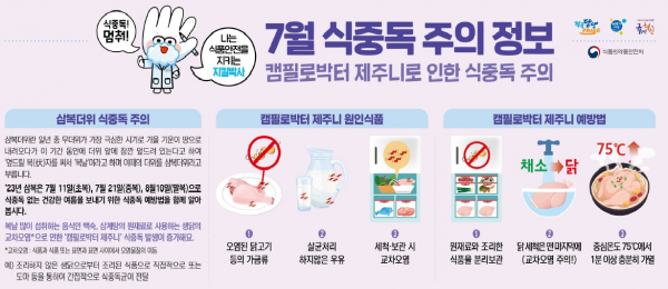 [금요저널] 안성시보건소는 삼복더위가 시작되는 7월에 보양식으로 많이 찾는 음식인 백숙, 삼계탕 등 원재료인 생닭은 캠필로박터 제주니 식중독이 발생하기 쉬우므로 식재료 관리에 각별한 주의가 필요하다고 말했다.