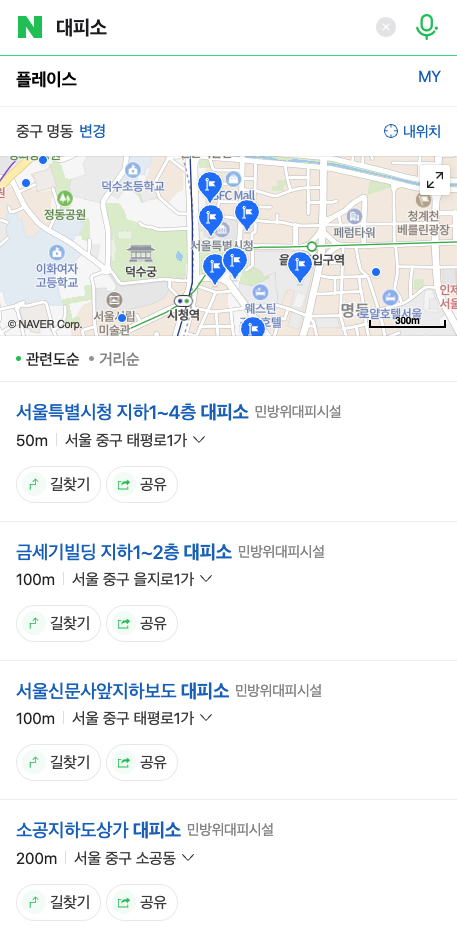 내 주변 민방위 대피소, 지도앱과 민간포털에서 쉽고 빠르게 찾는다