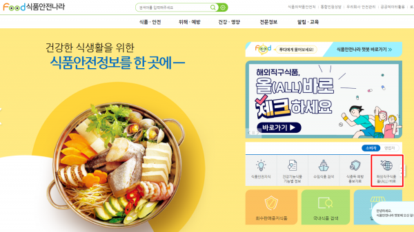 식약처는 가급적 정식 수입검사 절차를 거친 제품을 구매할 것을 권장하며 해외직구로 식품을 구매할 때는 구매 전 반드시 국내 반입차단 대상 원료·성분이 포함된 제품인지 먼저 확인해 위해 해외식품으로 인한 피해를 예방할 것을 당부드린다고 전했다.