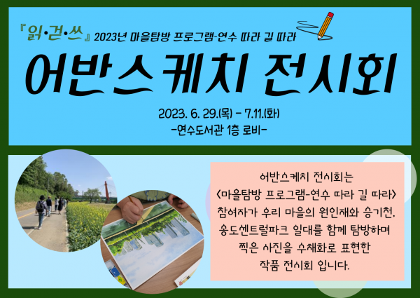 연수도서관 관계자는 “함께 걸으며 마을을 탐방하고 탐방한 곳을 그림으로 표현한 참여자들이 진정한 ‘책 읽는 인천, 함께 걷는 인천, 글 쓰는 인천’을 실천하는 성숙한 인천시민”이라고 말했다.