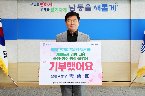 [금요저널] 박종효 남동구청장이 고향사랑기부제의 성공적인 정착을 위해 ‘고향사랑 기부 인증 챌린지’에 동참했다.