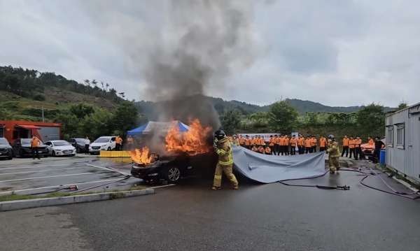 이번 훈련은 실제 화재 상황을 가정하고 전기차 화재대응 장비를 활용한 화재진압을 중점으로 실시됐다.