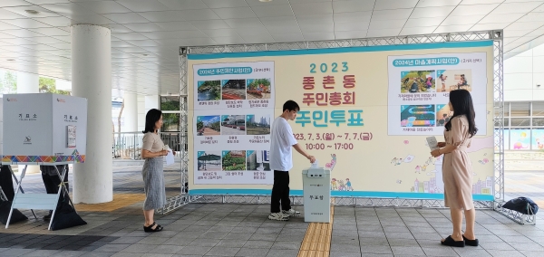 종촌동 주민자치회는 마을계획사업 4건, 주민제안사업 9건에 대한 우선순위 결정을 위해 지난 3일부터 7일까지 종촌동 행정복지센터앞에서 현장투표를 실시했다.