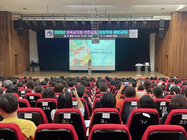 [금요저널] 인천시 남동구는 최근 구청 대강당에서 관내 어린이집 원장 및 보육 교직원 300여명을 대상으로 ‘2023년 보육 교직원 아동학대 예방 교육 및 어린이집 지도점검 사례 교육”을 실시했다고 7일 밝혔다.