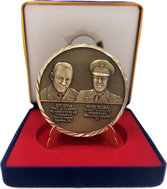 기념코인에는 참전용사의 모습, 이름, 당시 소속 및 계급이 새겨져 있다. 올해 기념코인에는 오머 앤더슨(OMER LEE ANDERSON, 미 21보병연대 제1대대 상병), 에버렛 앤드류스(EVERETT G. ANDREWS, 미 52포병대대 중위) 참전용사가 선정됐다.