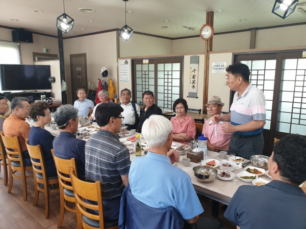 [금요저널] 포천시 관인면 삼양리소스는 지난 7일 대한노인회 관인면분회 회원 10여명을 초청해 건강한 여름나기를 위한 외식지원 행사를 가졌다.