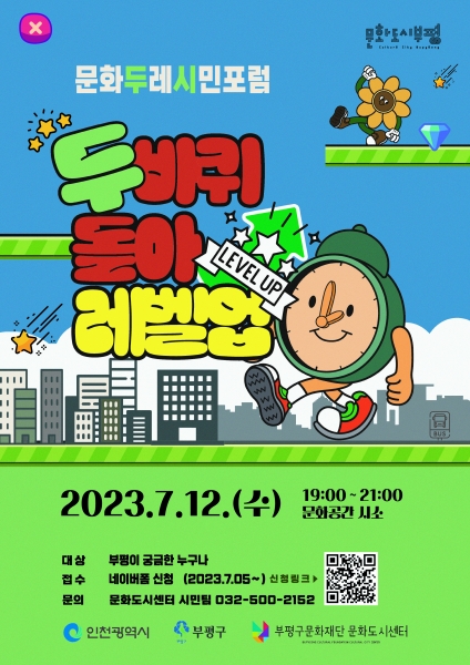 [금요저널] 부평구 문화도시센터가 오는 12일 오후 7시 문화공간 시소에서 문화두레시민포럼 ‘두 바퀴 돌아 레벨업’을 진행한다.