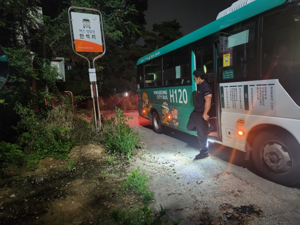 이번 조명 설치는 도심 외곽지역을 운행하는 공영버스 승무원 임성빈 주임이 정기제안제도에 교통 여건이 열악한 관내 서부권 지역의 공영버스를 이용하는 시민을 위해 제안한 사업으로 2022년 정기제안제도 최우수상으로 선정돼 실시됐다.