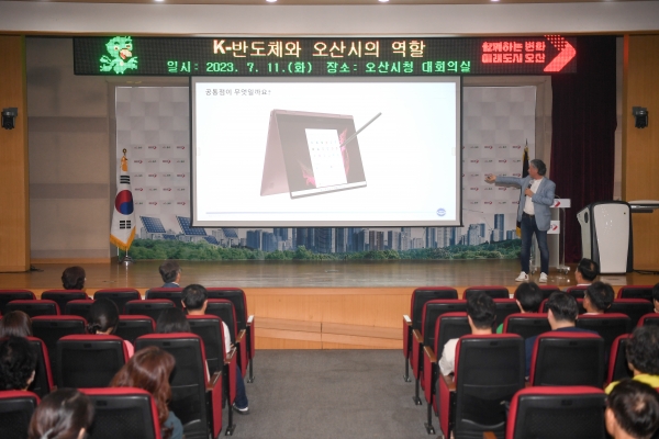 [금요저널] 오산시는 11일 오전, 시청 대회의실에서 4차 산업혁명 시대 대표 미래 먹거리 중 하나인 반도체 산업 관련된 직원 교육을 진행했다.