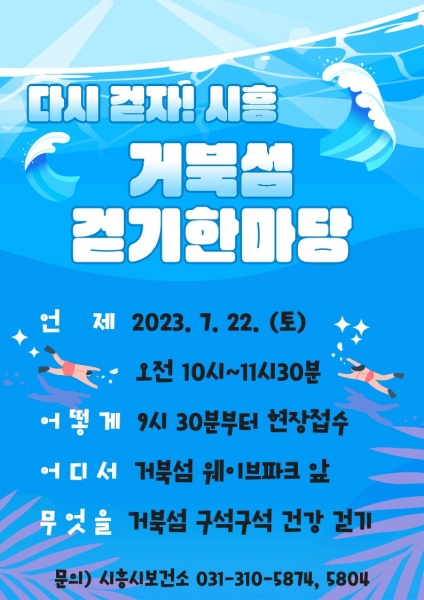[금요저널] 시흥시보건소 건강도시과는 거북섬의 뛰어난 자연경관을 체험하며 즐거운 걷기 경험을 제공해 시민의 생활 속 걷기 습관을 형성하고자 거북섬 해양축제 기간에 ‘거북섬 걷기 한마당’을 개최한다.