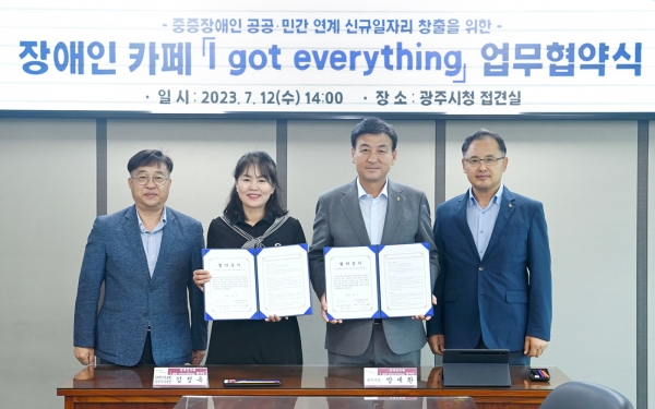 [금요저널] 광주시와 한국장애인부모회 광주시지부는 12일 광주시청 접견실에서 장애인 카페 ‘I got everything’의 운영관련 업무 협약을 체결했다.